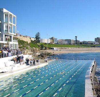 knees-up at Bondi Icebergs competing for the cool