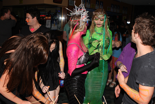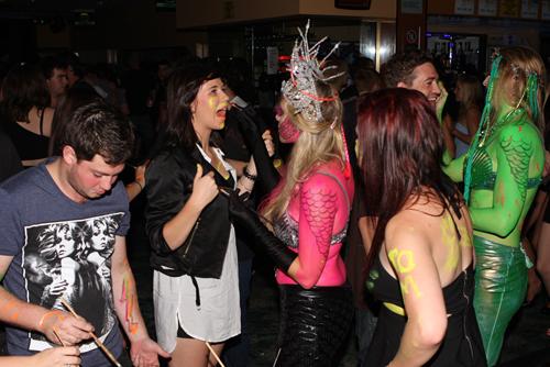Statue Bodyart Mermaid dancers paints patrons, Sonic
